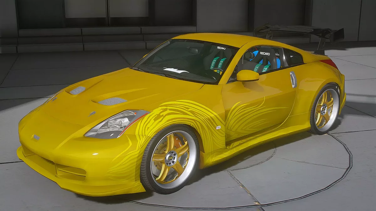 日产350Z Morimoto适用于GTA 5。 前部: 带有通风口和赛车固定装置的引擎盖突显了汽车的侵略性和运动特性。 前保险杠配有扩大的进气口和集成的分流器,赋予汽车动感外观。 狭窄的透明灯具与流畅的车身线条相得益彰。 前翼上的喷漆元素强调了个性。 侧面: 扩大的轮拱和粗壮的侧裙营造出低矮宽大的轮廓效果。 大型五辐轮圈涂成黄色,并配有镀铬装饰,突显运动风格。 后视镜和门把手与车身颜色一致,形成统一的形象。 内饰配备了带有对比色安全带的Recaro运动座...