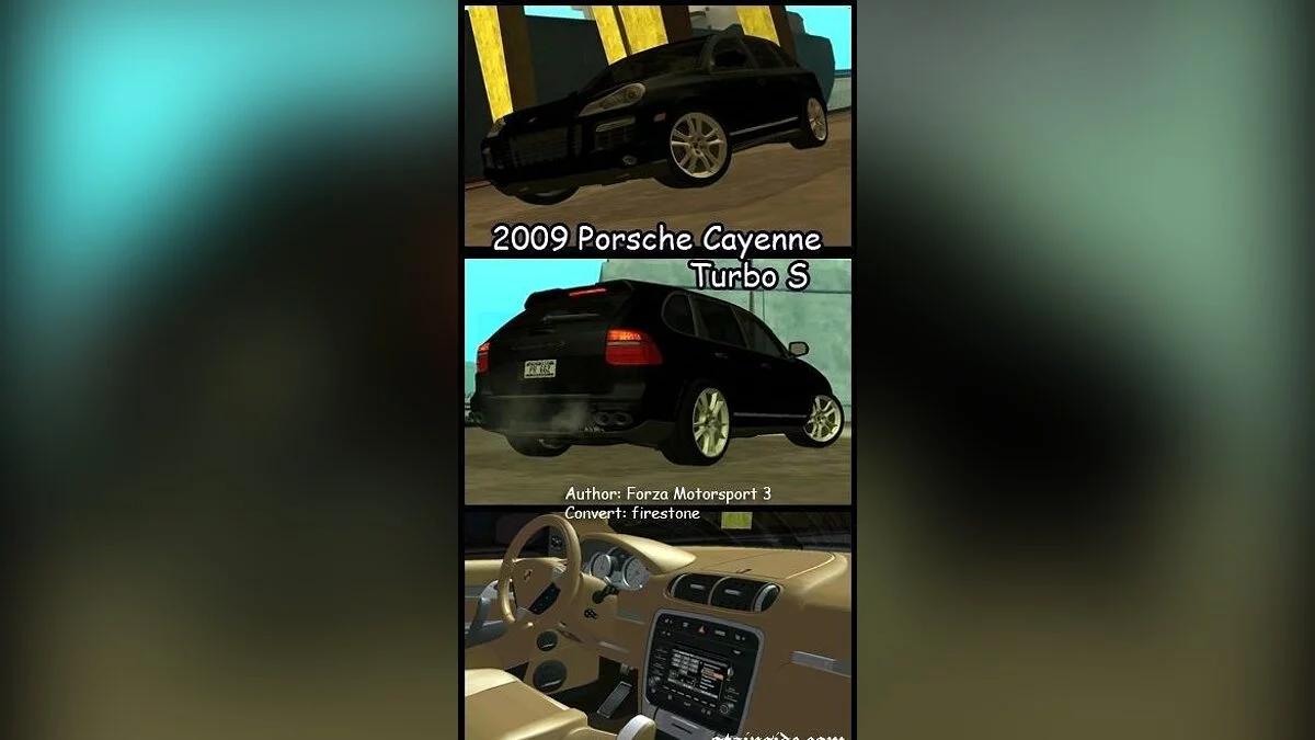 保时捷卡宴 Turbo S 16 适用于 GTA 圣安地列斯。 特点: - 外观高细节; - 内饰高细节; - 高细节轮圈; - HQ 纹理模型; - 高质量阴影; - 高质量碰撞。 祝你游戏愉快!