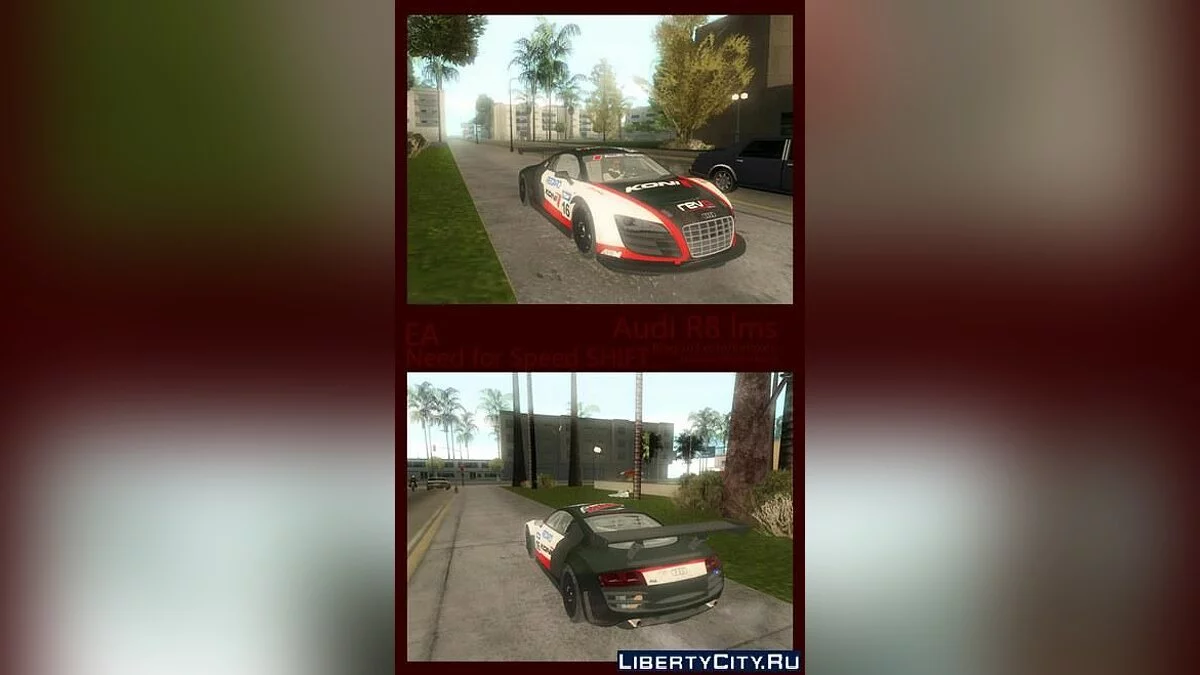 2014 奥迪 R8 LMS 适用于 GTA 圣安地列斯。 特点: - 中等质量外观; - SA 风格的灯光; - 可用的刹车卡钳; - 自定义设置。 祝你游戏愉快!