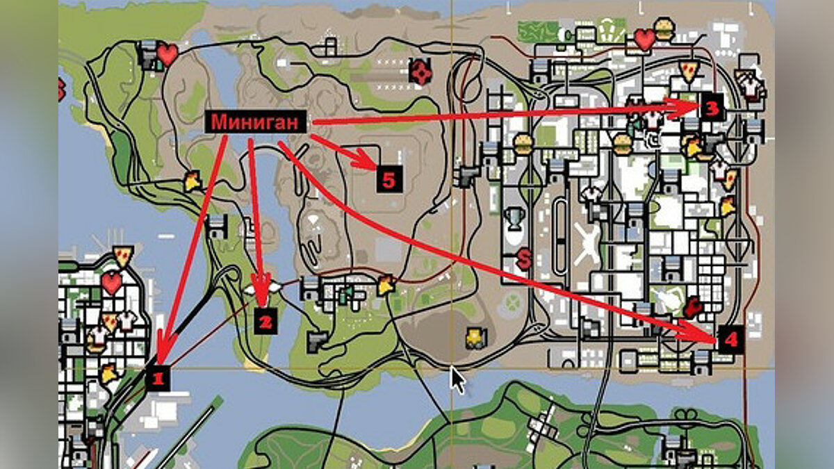 现在,当爱好者们已经对游戏进行了深入探索时,您不必自己在圣安地列斯的每一平方米中寻找;您可以简单地使用一张小地图,标记游戏中五把机枪的每个位置: